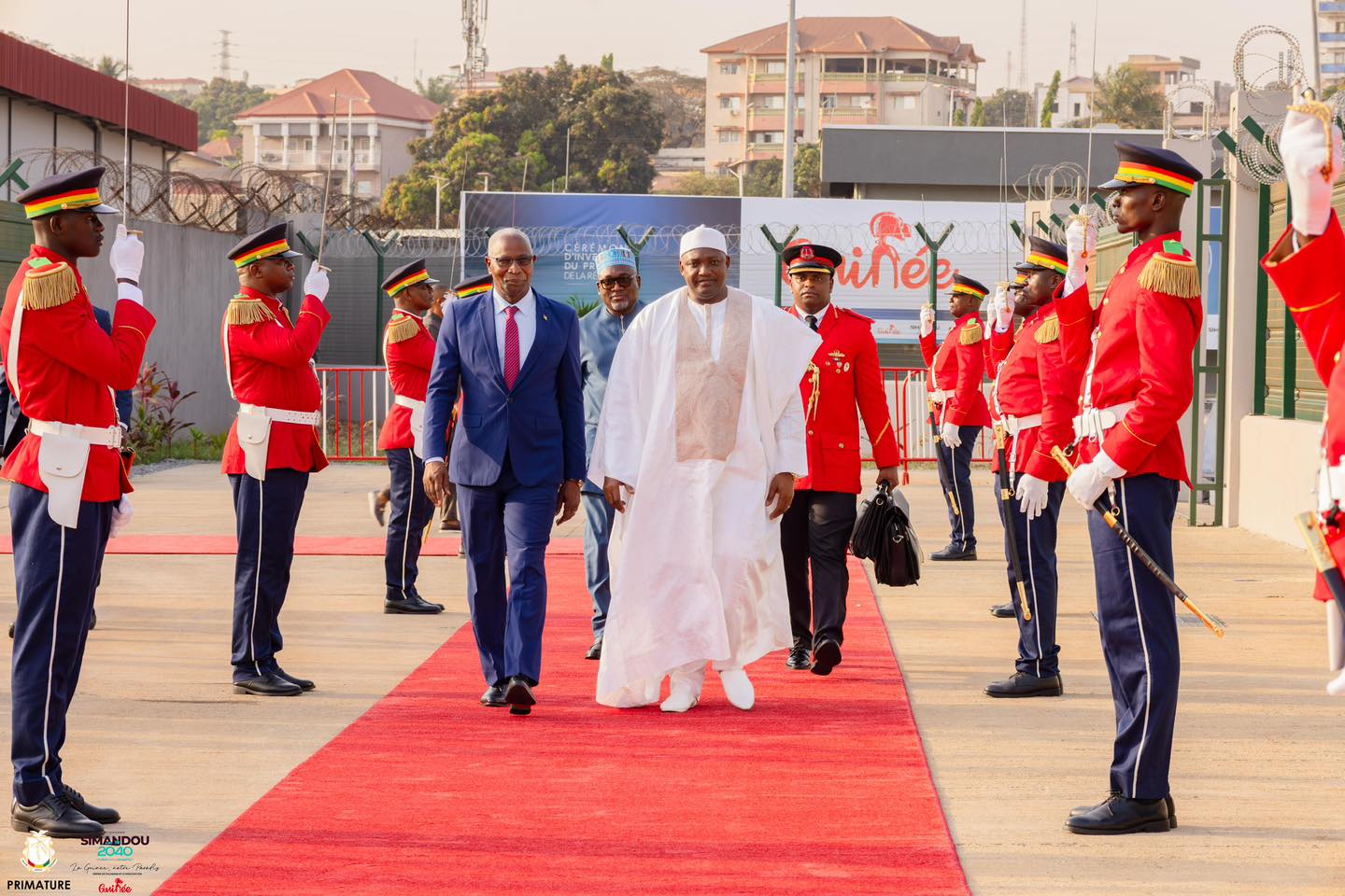 À cette occasion, le Premier Ministre Amadou Oury Bah, accompagné des membres du Gouvernement, a chaleureusement accueilli Son Excellence Adama Barrow, Président de la République de Gambie, venu avec sa délégation.