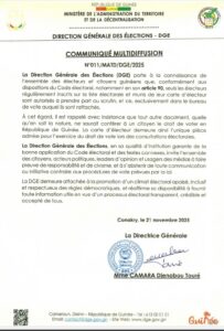 À l’approche des prochaines consultations électorales, la Direction Générale des Élections (DGE) a publié un communiqué officiel pour rappeler les règles encadrant la participation au scrutin en République de Guinée.